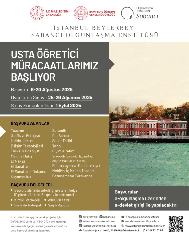 İstanbul Beylerbeyi Sabancı Olgunlaşma Enstitüsü 2025-2026 Eğitim Öğretim Yılı Usta Öğretici Müracaatları Başlıyor!